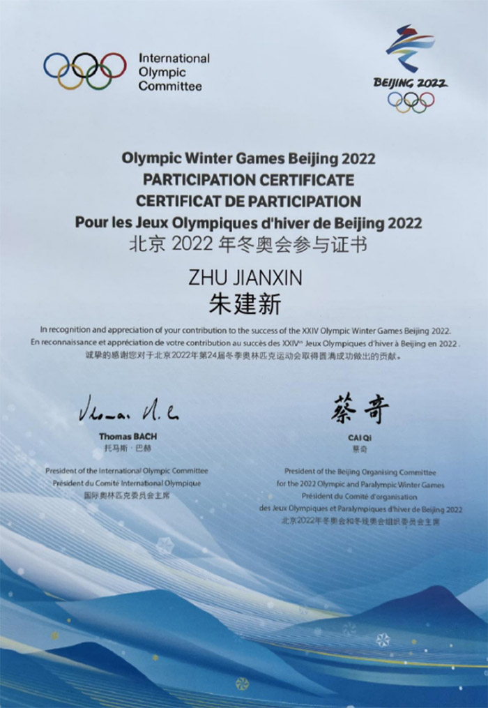 近日,徽州楮皮紙第二代傳承人、黃山市凝霜文化發(fā)展有限公司總經(jīng)理朱建新欣喜地收到了一份特殊的證書——“北京2022年冬奧會(huì)參與證書”,以感謝其對(duì)北京2022年第24屆冬季奧林匹克運(yùn)動(dòng)會(huì)取得圓滿成功作出的貢獻(xiàn)。據(jù)悉,此因是該公司出品的徽州楮皮紙成為北京冬奧會(huì)專用紙之一,為該屆冬奧會(huì)增添了一抹閃亮的