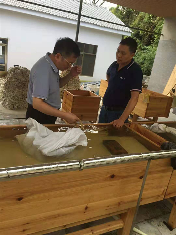 2021年8月27日,中科大湯書(shū)昆院長(zhǎng)再一次對(duì)我公司徽州楮皮紙恢復(fù)工藝做指導(dǎo)。