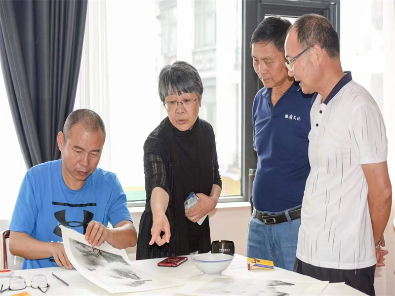 知名畫家汪家芳老師一行來(lái)公司指導(dǎo)并試筆
